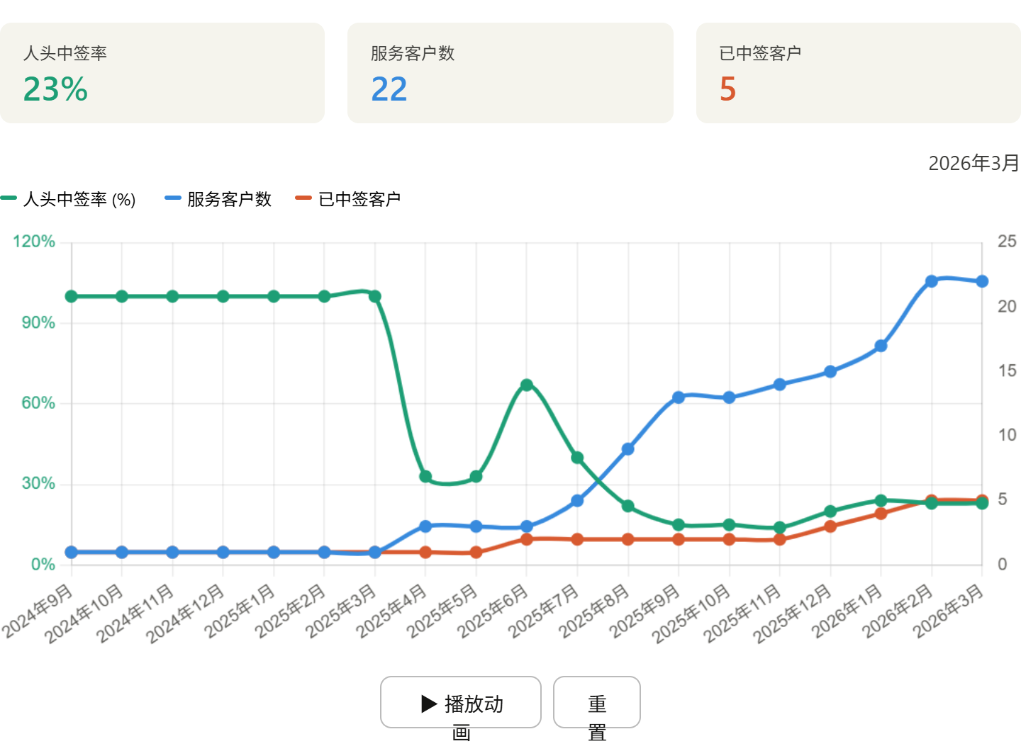 由于近期新加入了不少客户,中签率从原来的30%暂时回落到24%——但这个数字依然远超行业平均水平。随着时间推移,我们有信心这个比例会继续攀升。